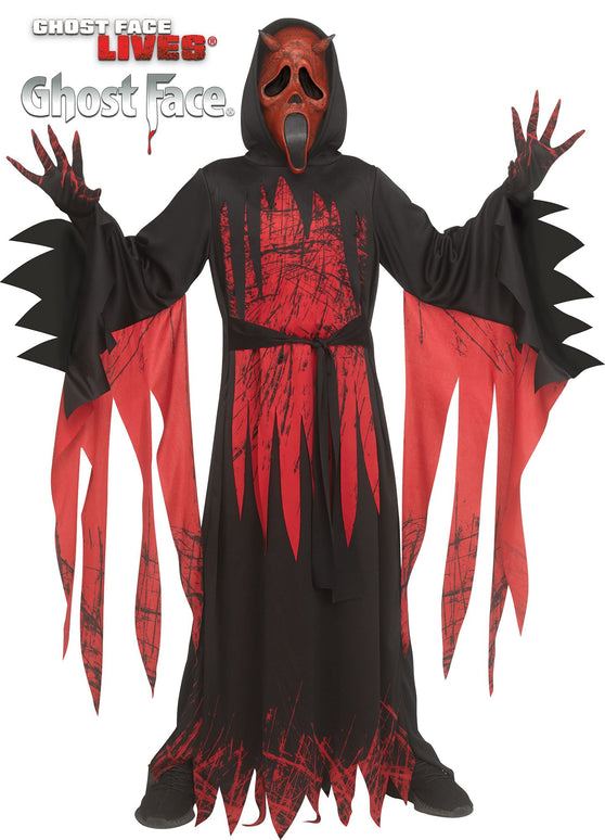 Fun World Officially Licensed Costume – Authentic Aged Devil Face® design. Complete Costume Set – Includes horned devil mask, hooded robe with attached belt, and stuffed finger gloves.We have a 30-day return policy, which means you have 30 days after receiving your item to request a return.