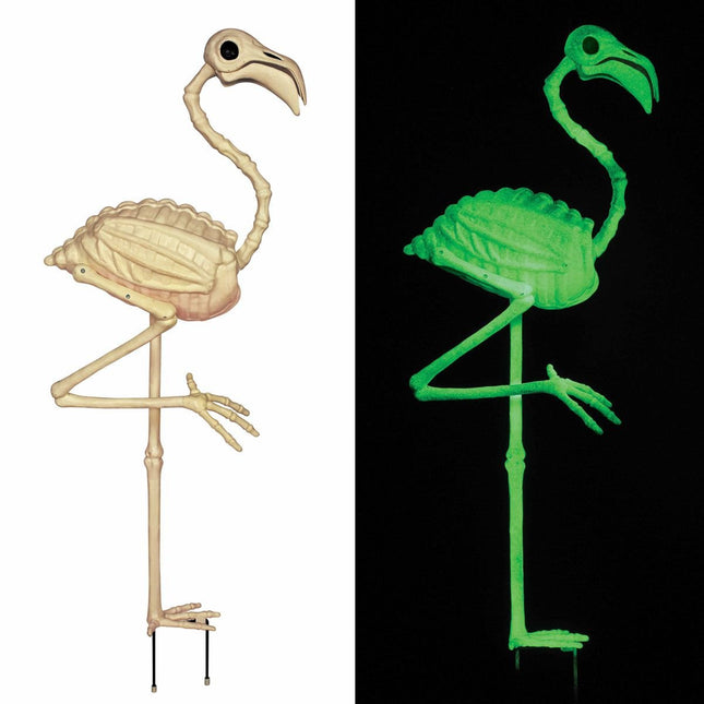Seasons 33.75" Skeleton Flamingo Decoration – Black Light Reactive Halloween Yard Prop