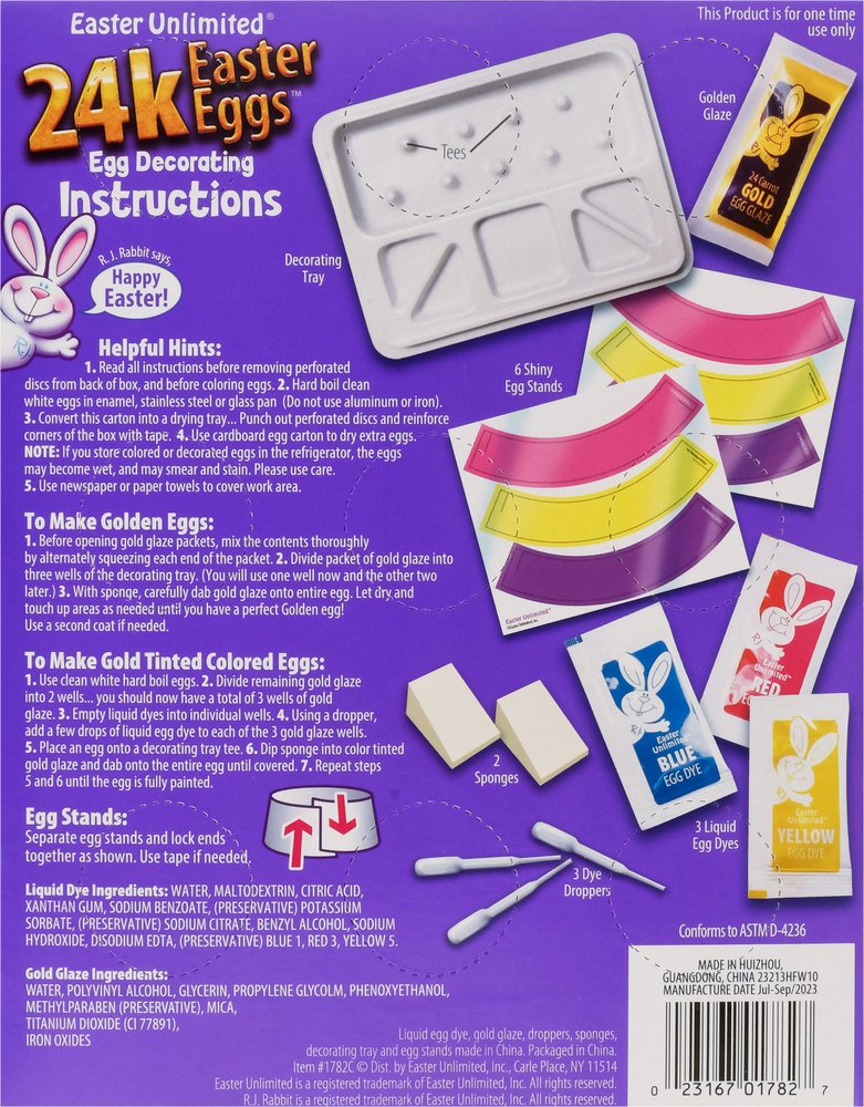 Elevate your Easter egg decorating with the 24 Karat Easter Egg Coloring Kit by Easter Unlimited! This luxurious egg decorating kit allows you to create stunning, gold-colored Easter eggs that will shine like real 24-karat treasures.