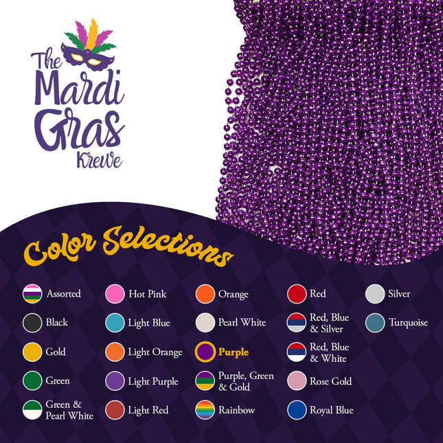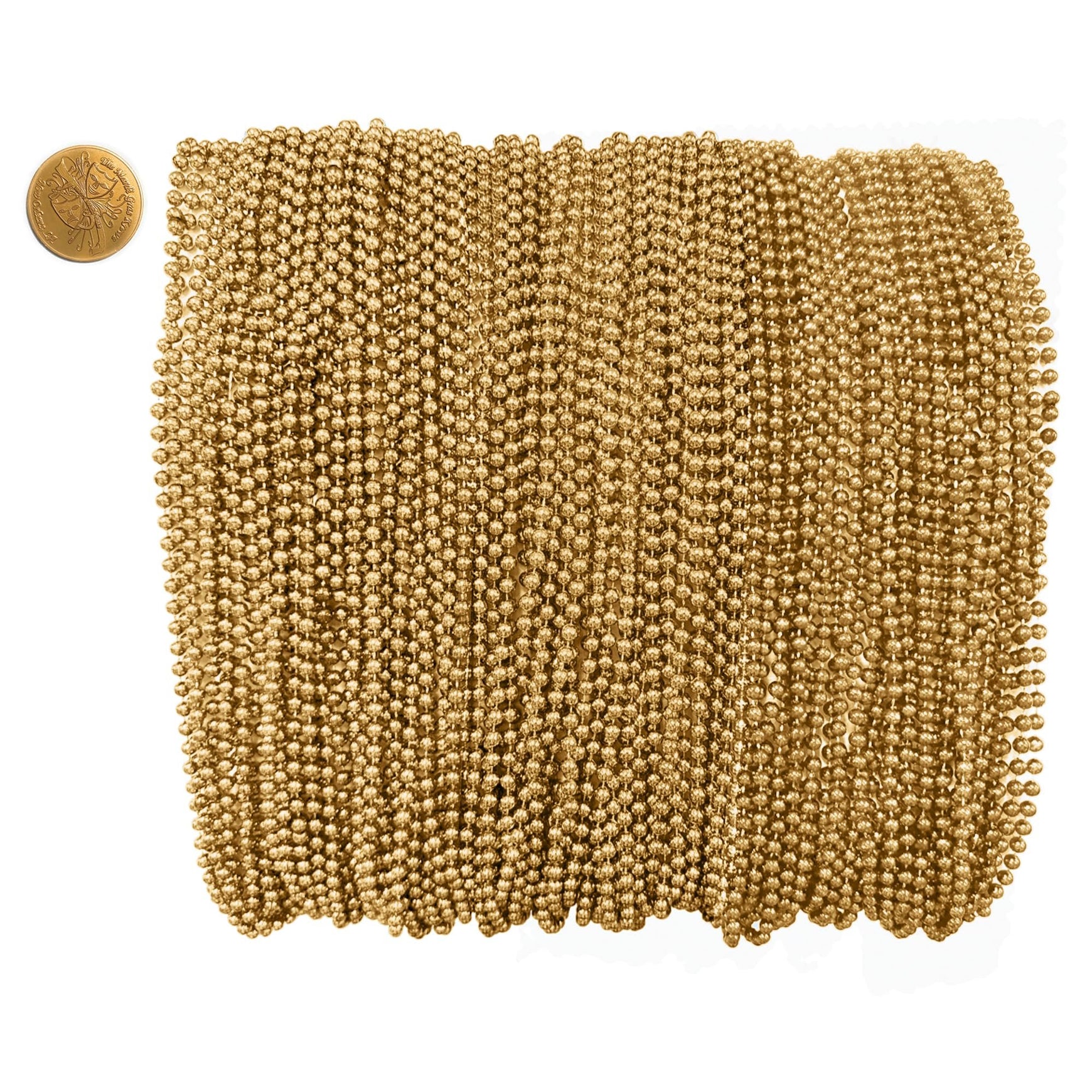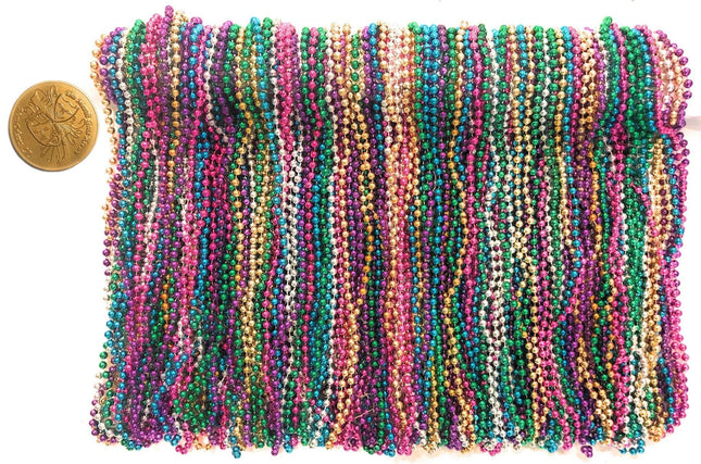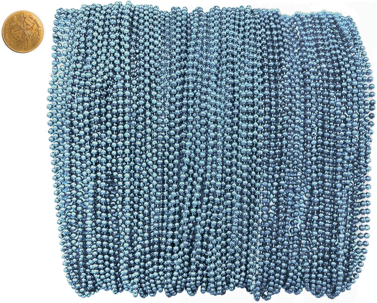 Mardi Gras Beads 33 inch 7mm, 12 Dozen, 144 Necklaces with Doubloon- Bulk Party Favors