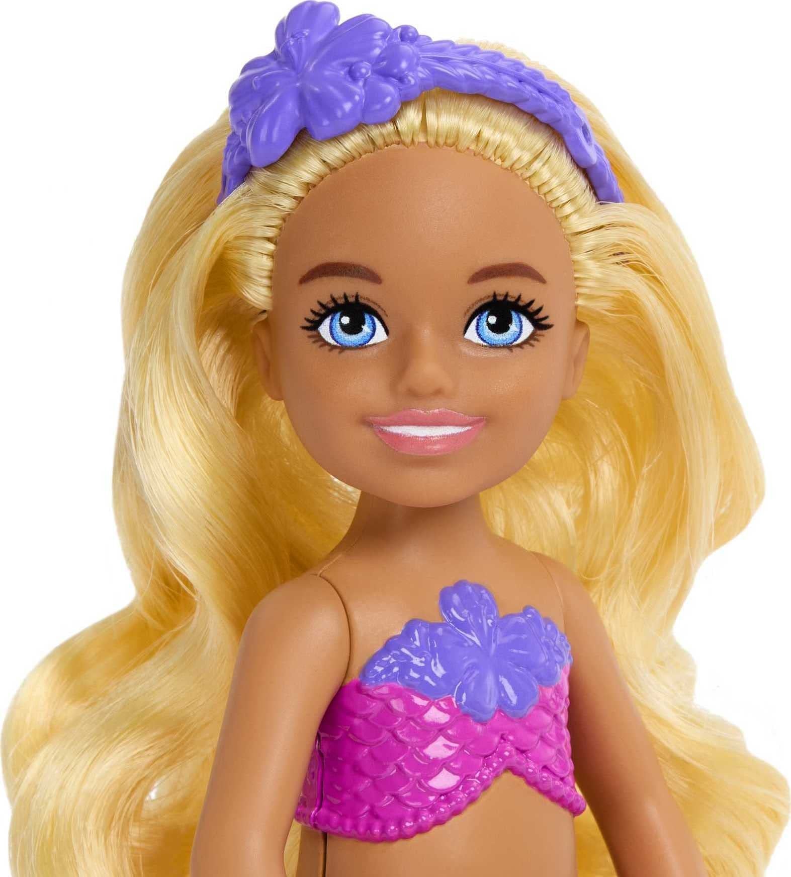 Barbie Dreamtopia Chelsea Mermaid Small Doll with Removable Hair Accessory, Wavy Blonde Hair & Ombre Tail, Bends at Waist