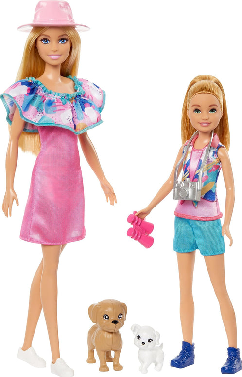 Barbie & Stacie Doll Set with 2 Pet Dogs & Accessories, Dolls with Blonde Hair & Blue Eyes, Summer Clothes