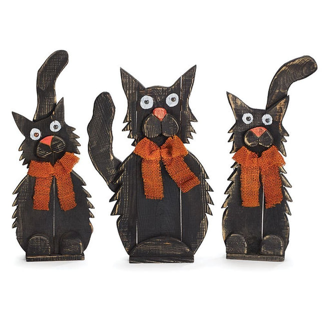 Burton and Burton Trio Hand Painted Wood Cat Décor – Rustic Home Accent, Whimsical Feline Figurines, Tabletop or Shelf Decoration