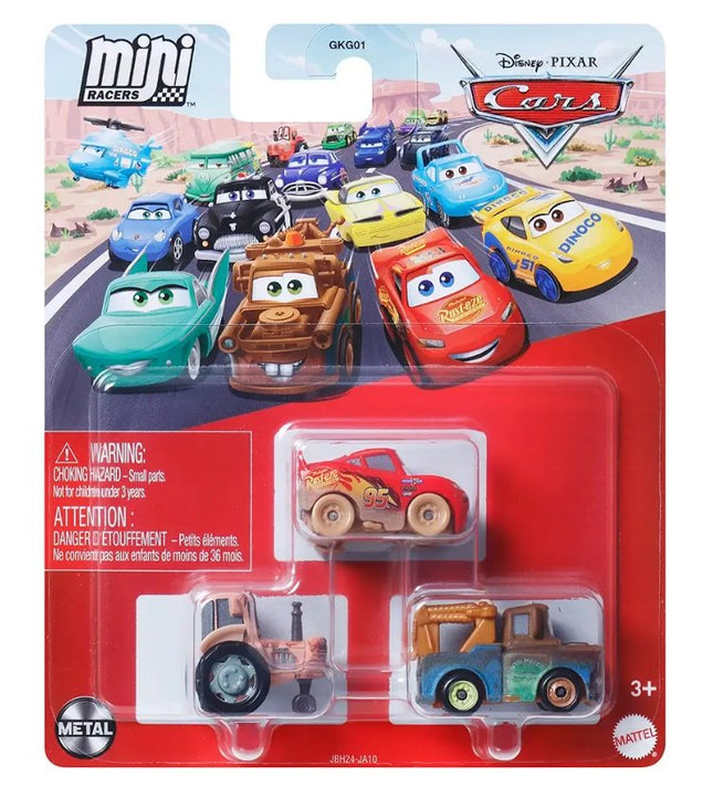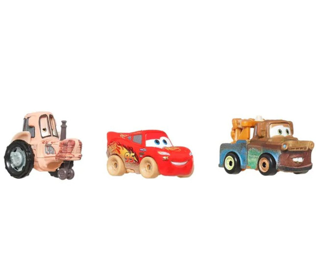 Disney Pixar Cars Mini Racers 3-Pack – Tractor, Muddy Lightning McQueen & Mater – Metal Die-Cast Character Vehicles for Kids and Collectors