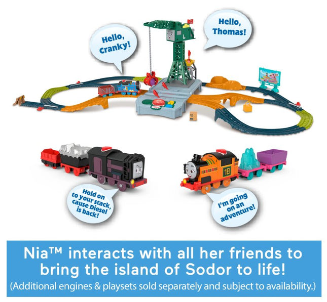 All aboard for fun with the Thomas & Friends Talking Nia Motorized Train by Fisher-Price!