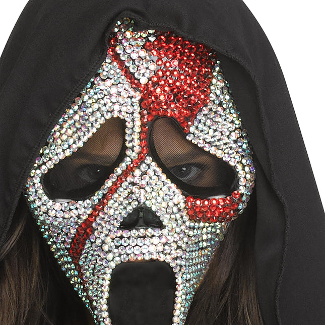 Fun World Women’s Ghost Face Bloody Bling Costume – Small – Hooded Gown, Belt, Gloves & Rhinestone Bling Mask