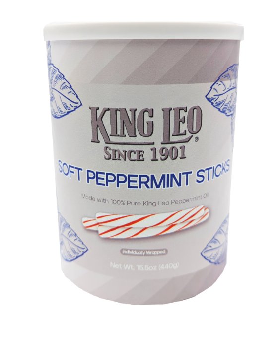 For over a century the name King Leo has stood for superior peppermint confections. The King Leo Soft Peppermint Sticks Canister (15.5 oz) is a refined candy experience that blends sweet, soft texture with refreshing mint flavor.