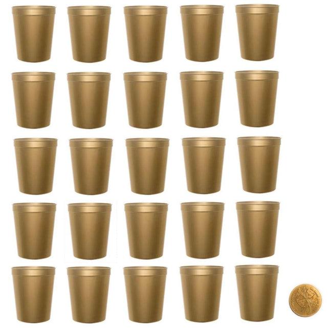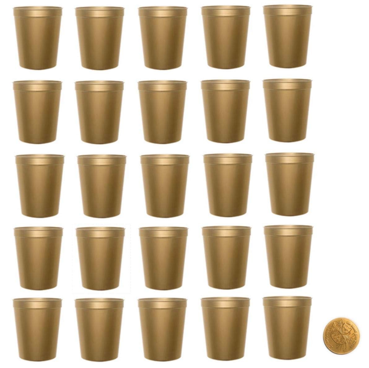 Metallic Gold Plastic Party Cups, Pack of 25, Blank 16 oz Stadium Cups