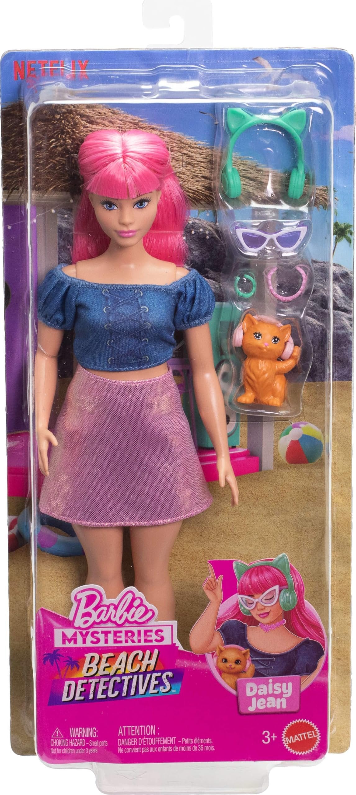 Barbie Mysteries: Beach Detectives Daisy Doll Wearing Signature Removeable Outfit with Storytelling Accessories, Including Pet Kitten