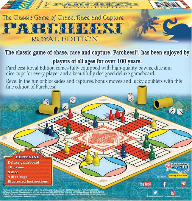 Winning Moves Games USA Dice Game – Parcheesi Royal Edition: Classic Family Favorite with Artwork, Tokens & Dice Cups, 2–4 Players, Ages 8+