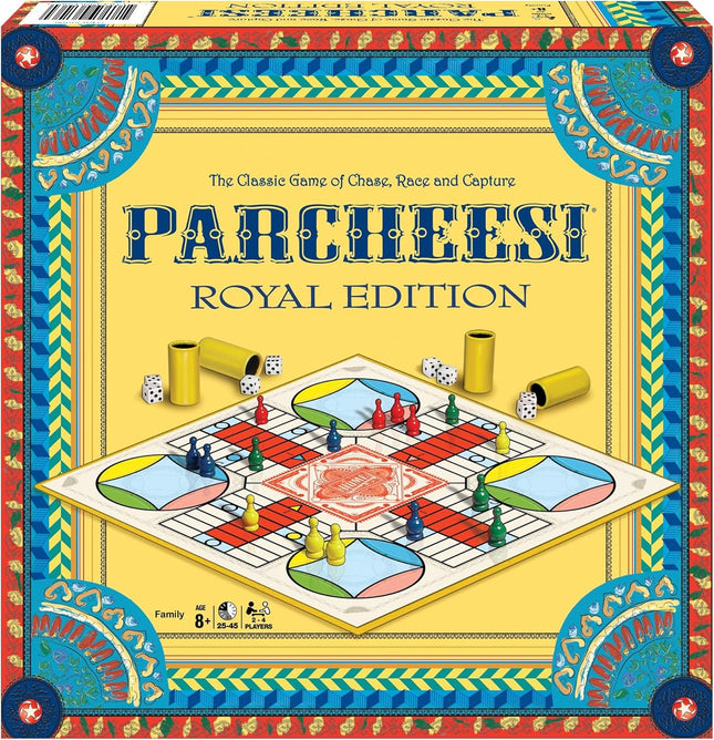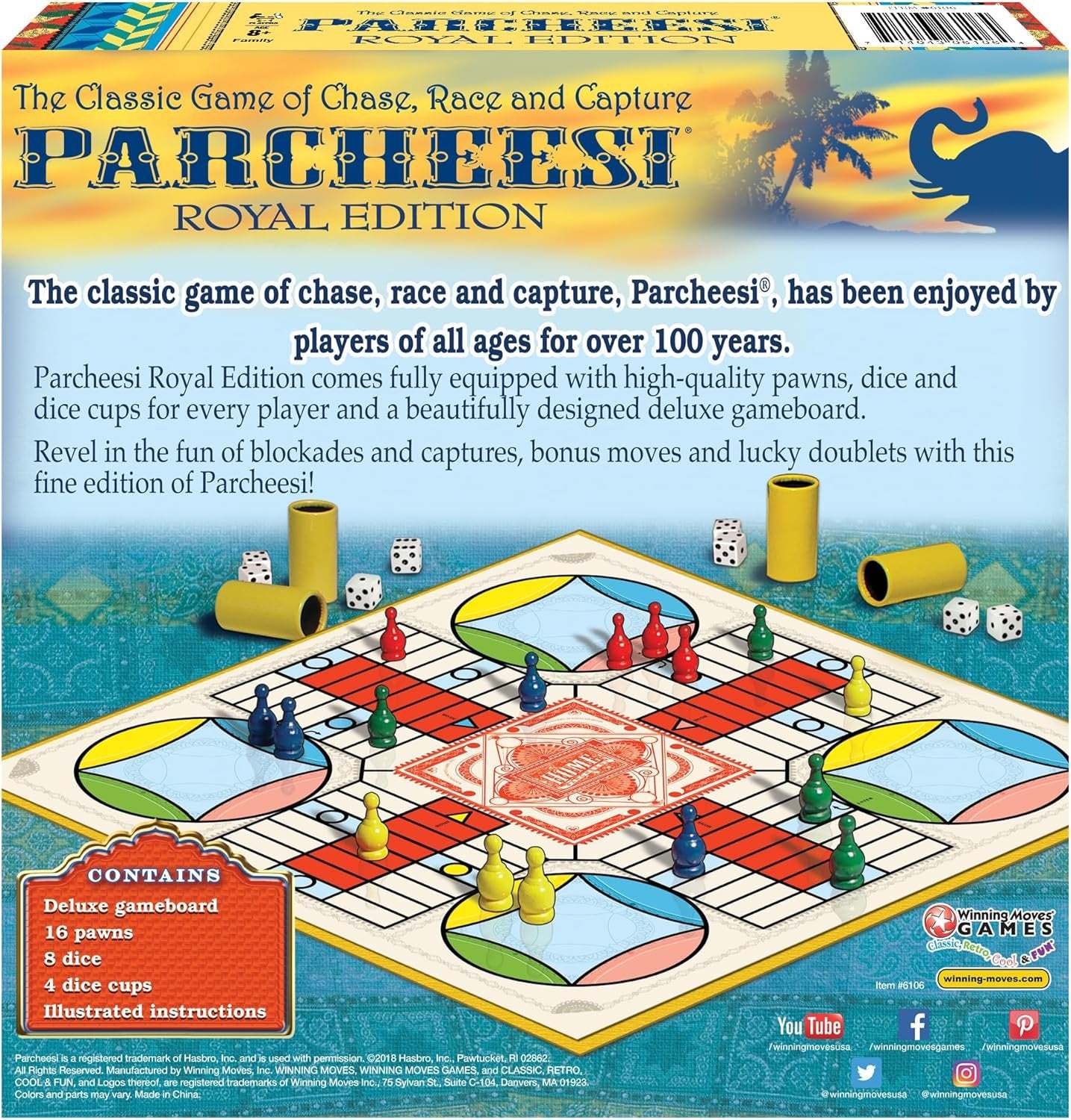 Winning Moves Games USA Dice Game – Parcheesi Royal Edition: Classic Family Favorite with Artwork, Tokens & Dice Cups, 2–4 Players, Ages 8+ brings timeless gameplay to life in a beautifully updated edition. Rooted in centuries of tradition, this engaging dice game blends simple rules with competitive fun. The updated design enhances visual appeal while preserving the classic mechanics that generations have loved. Perfect for family game nights, it promotes social interaction, light strategy, and friendly rivalry.